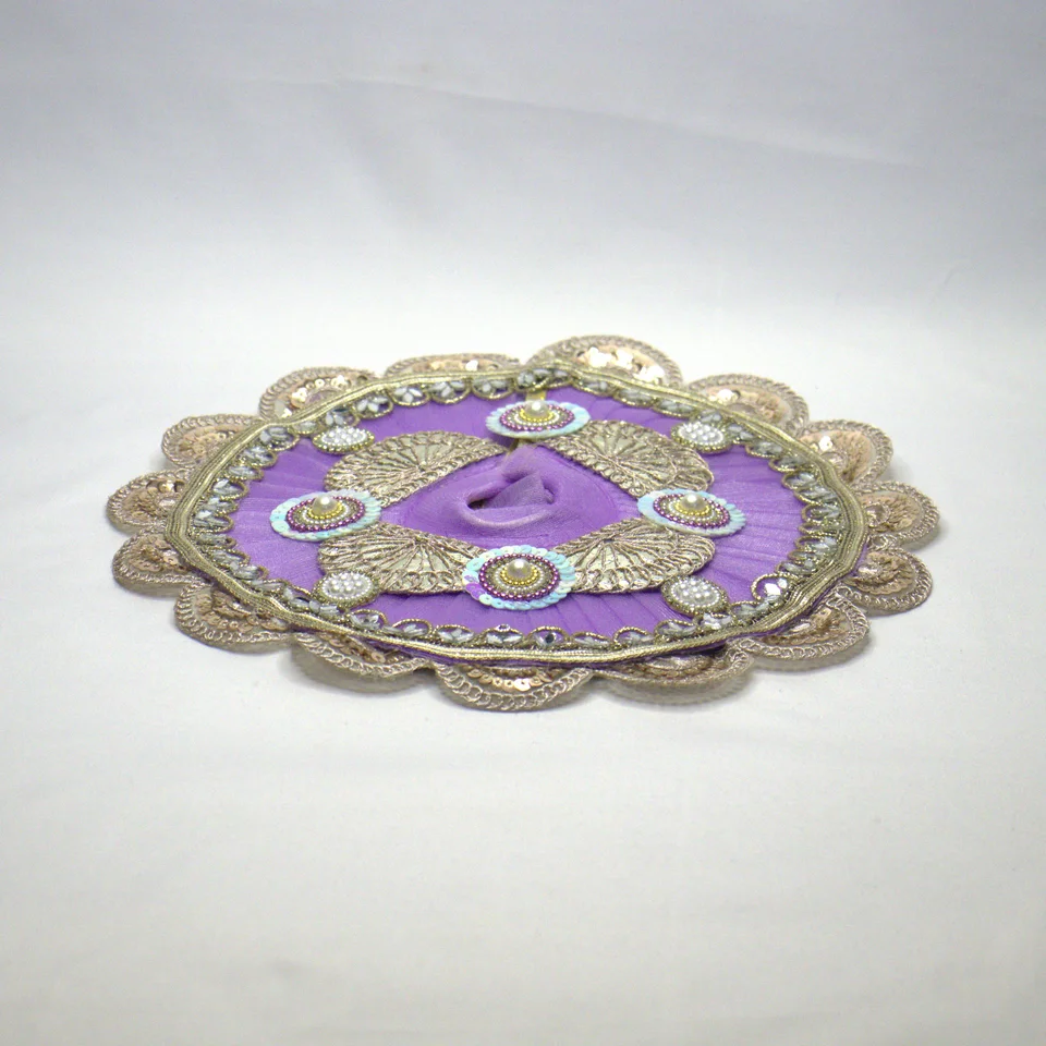 A graceful lavender net poshak that brings soft elegance to the shringar of Laddu Gopal.