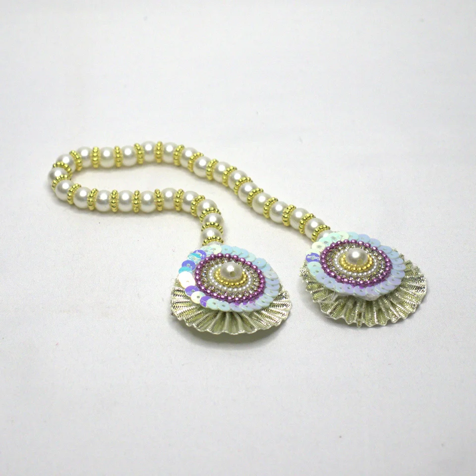 This three-piece set provides everything needed for a complete shringar of Bal Gopal. The net fabric adds lightness and movement to the poshak, making it suitable for daily puja as well as special occasions like Janmashtami and Diwali.