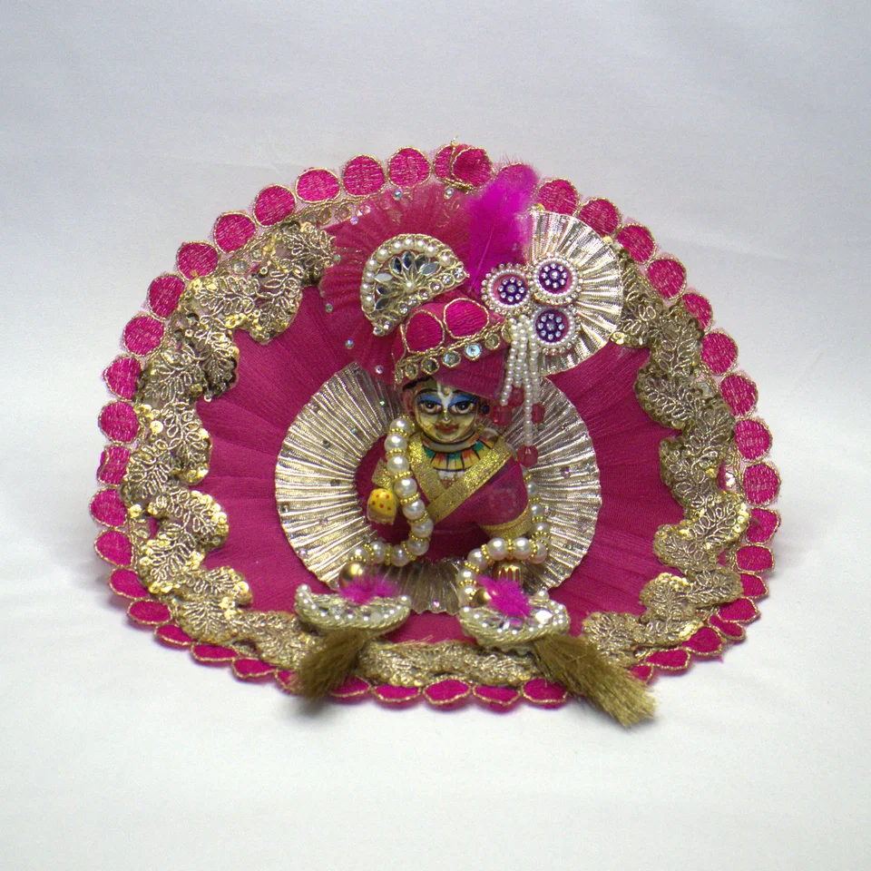 The color combination works harmoniously throughout - the deep magenta brings energy and devotion, while the light accents add grace. This set is designed to make Laddu Gopal look resplendent during Janmashtami celebrations, Diwali puja, or any special occasion when you want Thakurji adorned in festive finery.