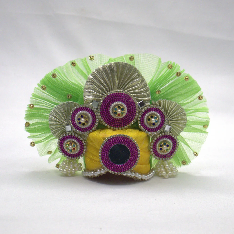 The matching mukut crown brings the ensemble together with coordinated decorative details. Together with the patka, it completes the festive shringar for your Thakurji.