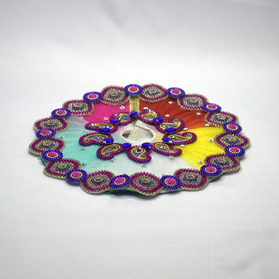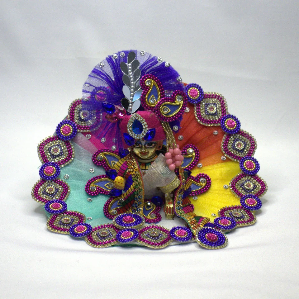 A beautiful multi-color net poshak set crafted for the loving shringar of Laddu Gopal.
