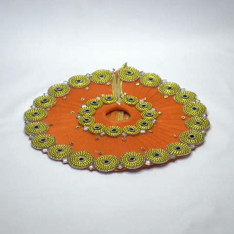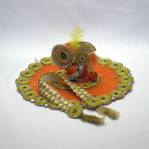 Orange and gold are the traditional colors of Janmashtami and Govardhan Puja shringar. This poshak set makes an ideal gift or personal puja addition for devotees seeking to honor Krishna with devotion and beauty.