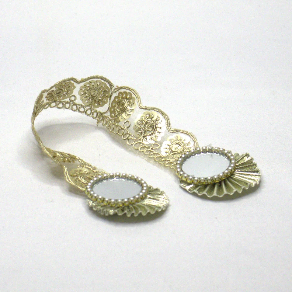 Patka with golden lace, gota flower and mirror butties decorated with pearl.