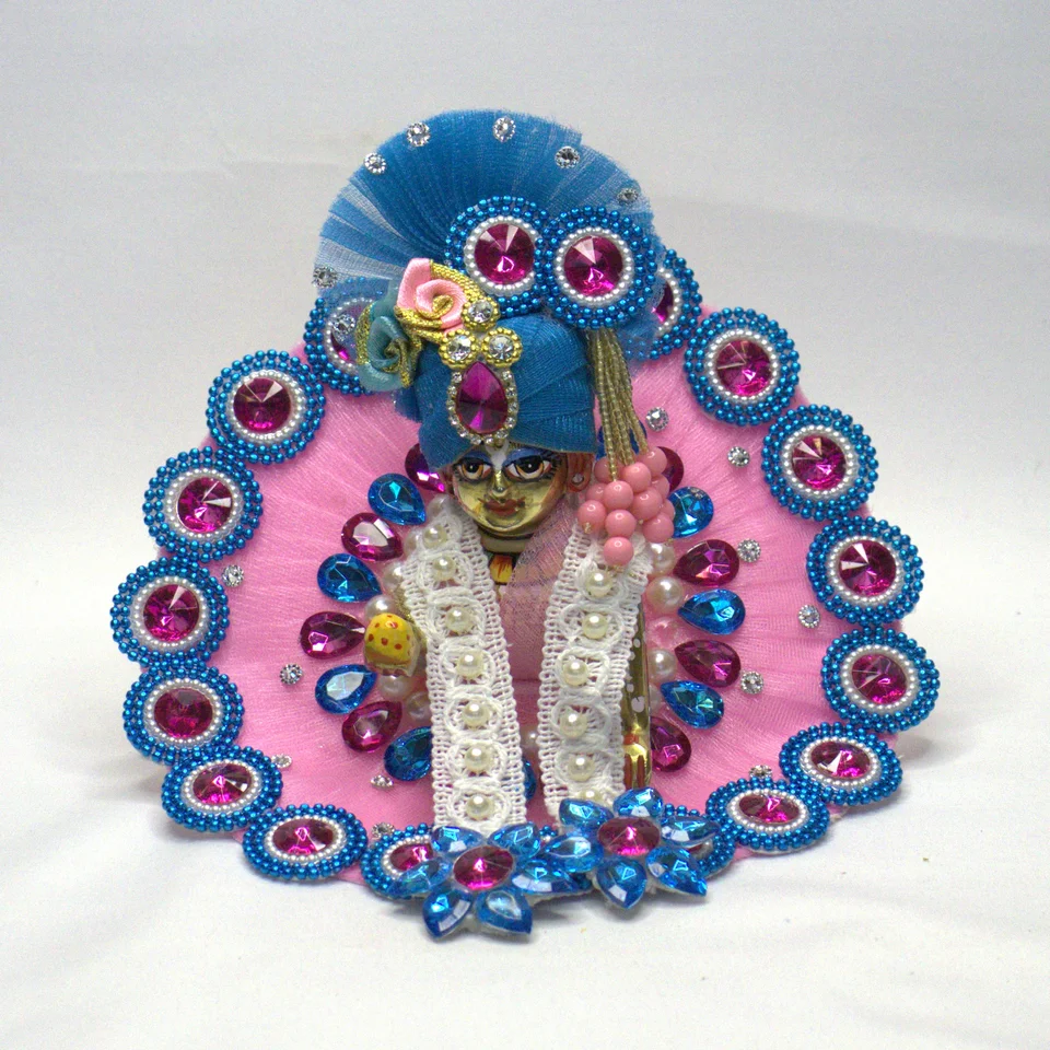 A delicate pink net poshak that brings soft elegance to Thakurji's shringar.