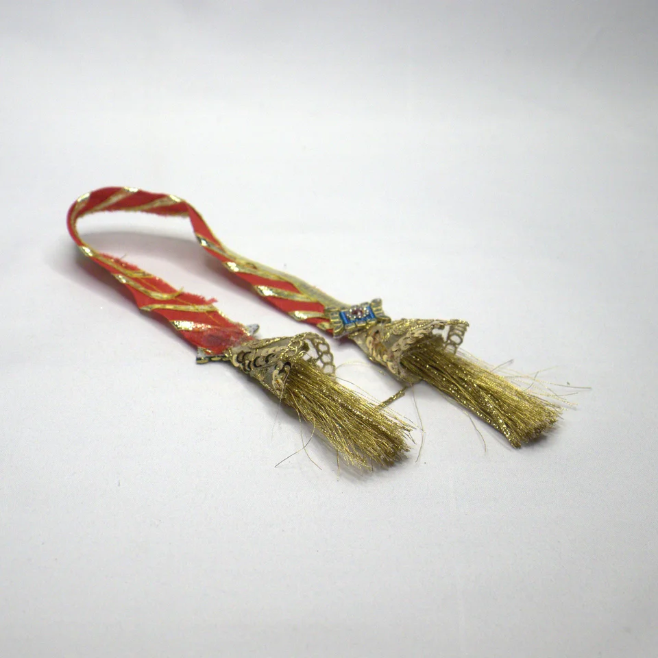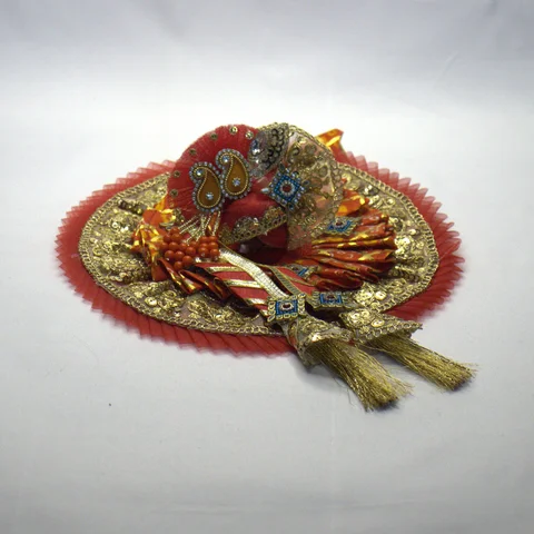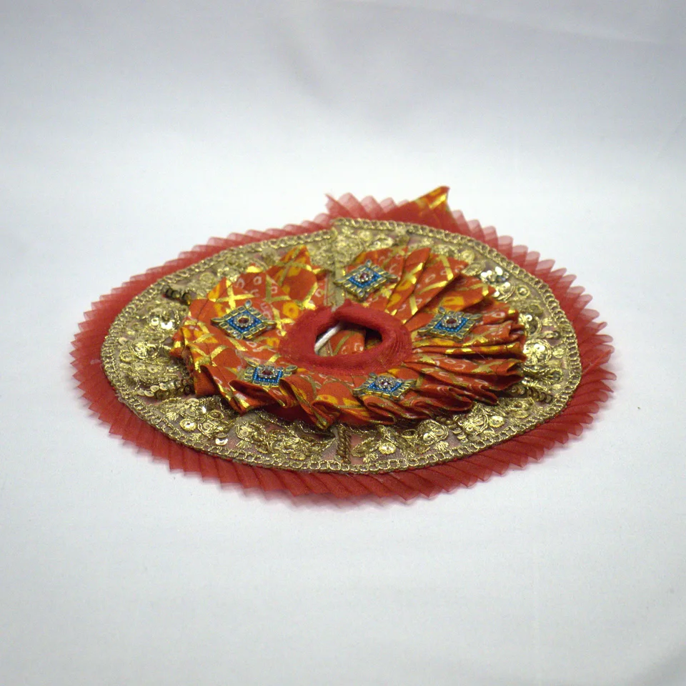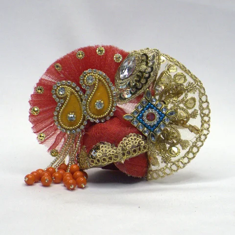 The patka adds the finishing royal touch with gota flower work, pearl beading, and ball chain accents. When draped across the idol, it creates a ceremonial elegance perfect for Janmashtami shringar.