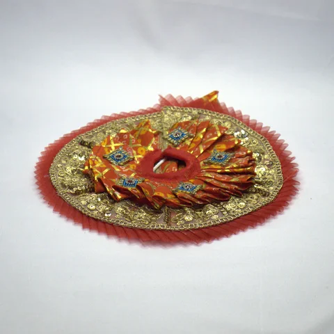 This stunning red net poshak brings together ornate embellishments and premium craftsmanship for Laddu Gopal.
