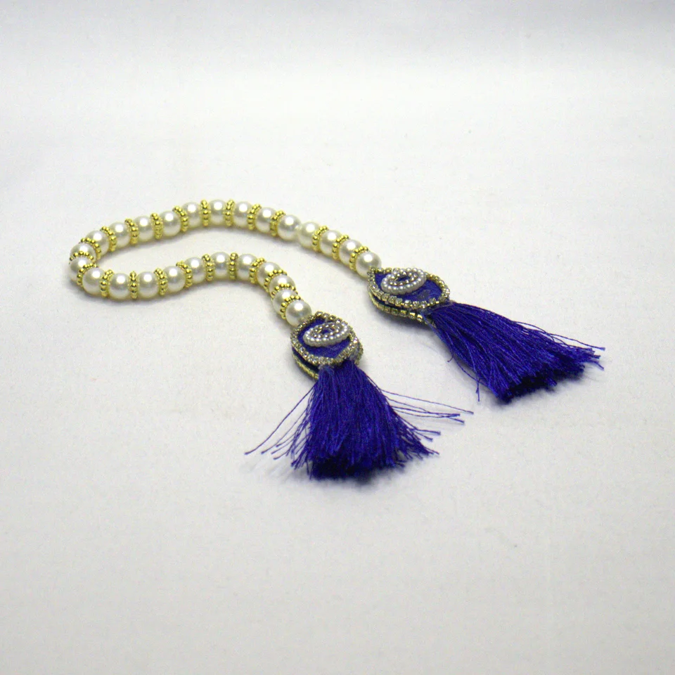 Pearl patka with ball chain detailing adds graceful movement and completes the three-piece shringar set.