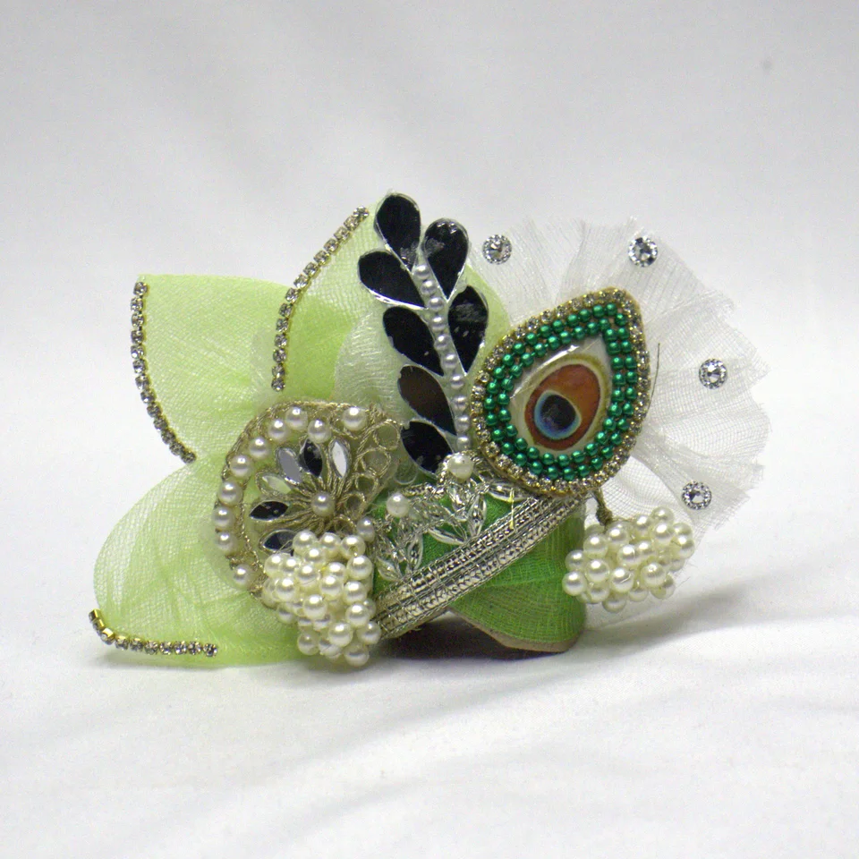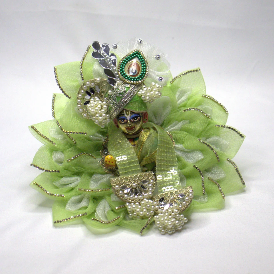 Together, the three pieces form a cohesive shringar set where every element references the same sea green palette. The result is a poshak that feels complete and considered, suitable for daily puja or elevated for Janmashtami, Radha Ashtami, and Diwali. Each piece is handcrafted by Gopalji Fashion, bringing handmade quality to your deity's adornment ritual.