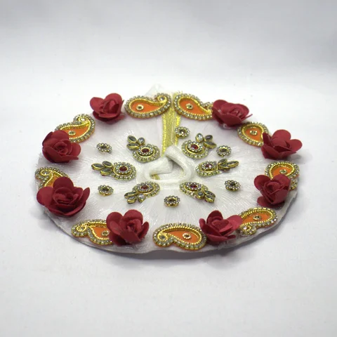 The white net dress offers a clean, graceful foundation for Krishna idol shringar. Its sheer quality adds a subtle elegance without overwhelming the idol's form.